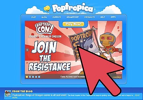 Go on poptropica.com. When the screen pulls up, click on "Play" or "Play Now." After the Poptropicans run across the screen, click on new player. After you have done that, select whether you're a boy or a girl, and select your age. The game changes, depending on your age, so it's important to be honest and make the game as fun as possible.