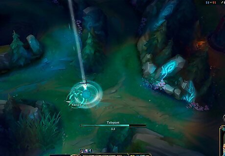 Teleport to surprise enemies. Another, more advanced kind of teleport play, would be teleporting to a deep ward in the enemy jungle, behind their front lines, then charging up behind them. Champions like Sion and Hecraim to this very nicely; you can eliminate a member of the enemy easily.