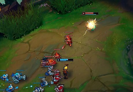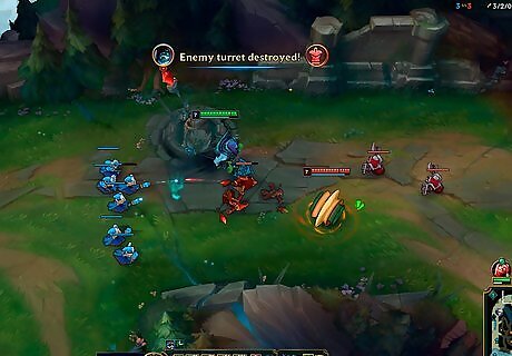 Deal with your lane opponent. While batting for lane control, make sure you are safe. Your lane opponent will try anything to kill you or bring your health low enough that you recall. Melee characters will have a hard time fighting ranged characters, because the ranged champions can stay back from their enemy to harm them. If they start to get a little too aggressive, back off a little, but not too much.