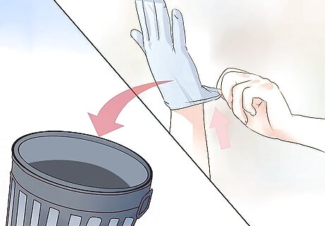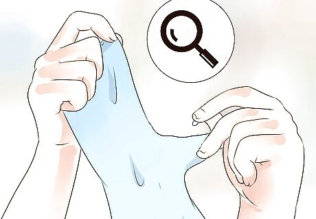 Check gloves for tears. Look over each glove carefully. Ensure that each gloves in in tact, and free from any imperfections. If you notice any problems with the gloves, dispose of them and begin again with a new pair.