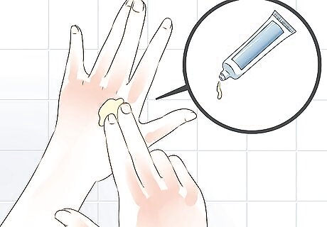 Use rotational rubbing on each thumb. “Rotational rubbing” simply means to rub in a circular motion. Use the palm of one hand to distribute product onto the thumb of the opposite hand by way of rotational rubbing. Repeat this on the other side.
