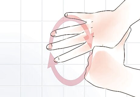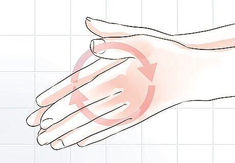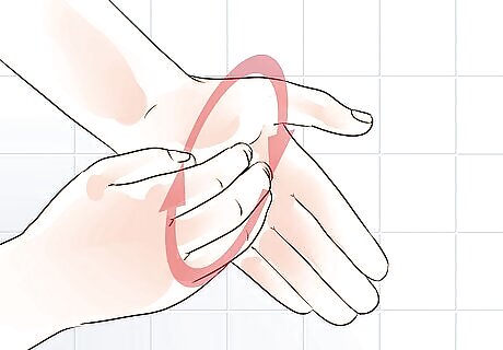 Use rotational rubbing on each thumb. “Rotational rubbing” simply means to rub in a circular motion. Use the palm of one hand to wash the thumb of the opposite hand by way of rotational rubbing. Repeat this on the other side.