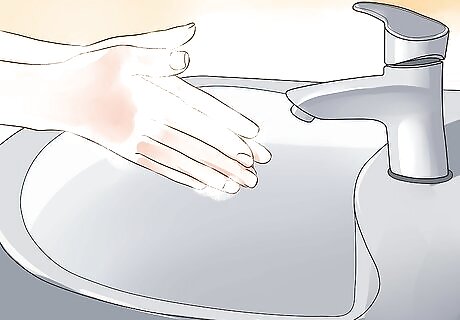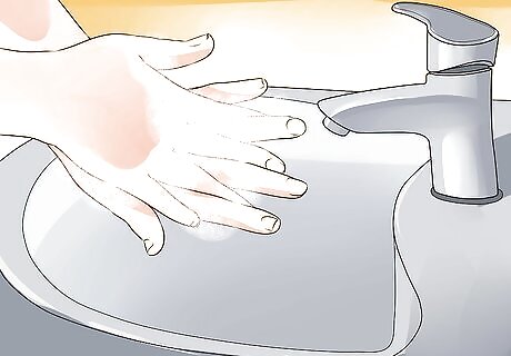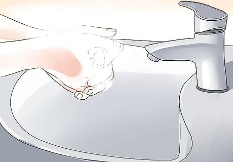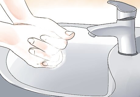 Wash your hands. Wash your hands with soap and water. Make sure all parts of your hands and wrists are properly cleansed. Dry your hands completely using a disposable towel.