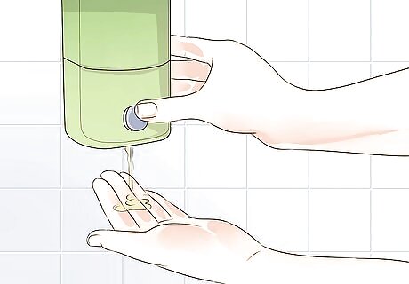 Apply soap. Dispense a generous amount of liquid soap into your palm. Liquid soap is preferable.