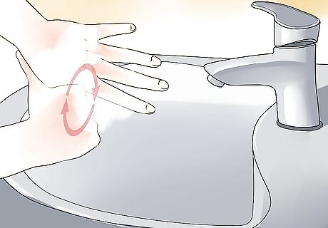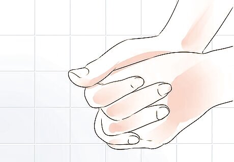 Clean your wrists. Use one hand to clean the opposite wrist by way of rotational rubbing. Repeat this on the other side.