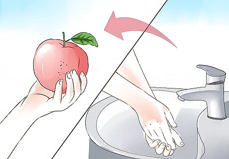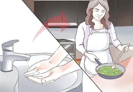 Wash your hands before preparing food or eating. Any time you will be working with food, you should first stop and make sure your hands are sanitary. This is true both if you are preparing food for others, or simply making a snack at home for yourself.