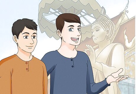 Stay for a short period. At the beginning, it's very useful to take the occasional weekend to stay at a respected temple or monastery. This almost invariably involves volunteer work, such as helping the monastics around the grounds and buildings or with other volunteers and monastic trainees (often known as Anagarikas) in the kitchen, but is an important foundation of generosity as well as developing your ethical and wisdom skills when dealing with people. Monastic life in good monasteries can be very demanding for monastic residents, generally because the temple functions as a central facet of cultural expectations and holy days, as well as offering services such as teaching, counselling, funerals and other services of what is more known as religious Buddhism. For this reason, secular or non-monastic Buddhists can learn a great deal about how one can develop a strong practice in the face of demanding expectations and service demands in a confined environment, often with very little expenditure, that monastics have to meet seven days a week.