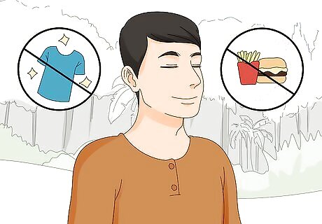 Keep the precepts. Lay people often choose to observe five or eight precepts, five being more common for everyday Buddhists. Although there is no harm in breaking your precepts by accident or unawareness, the longer you can keep them the deeper and more stable your practice becomes. The first five precepts are to refrain from killing, stealing; harmful sexual activity; improper speech; and substance abuse. Jewish and Christian readers should be experiencing a modicum of déjà vu at this juncture. The precepts' functional role is fascinating because keeping them builds a sense of confidence in life—essentially your lifestyle evolves in such a way that the wise praise your qualities and you avoid becoming a target of disapprobation. But their deeper role is providing a sense of having no regrets, which removes a hinderance to incredibly powerful meditation.