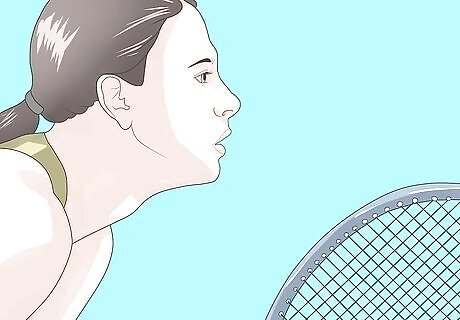 Focus on hitting the ball. By enjoying each point, and focusing on the enjoyment each strike brings, you will naturally focus on the ball. Keep your eye on the ball. Being a better tennis player requires good hand-eye coordination. This is the key to good tennis, and you will naturally hit better shots.