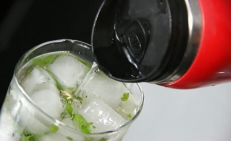 Add the club soda just before you begin serving the mojitos.