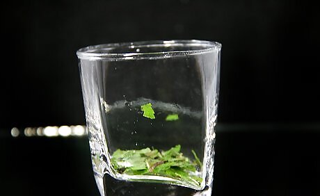 Place 1 teaspoon of the reserved mint leaves into an old-fashioned glass or other cylindrical glass.