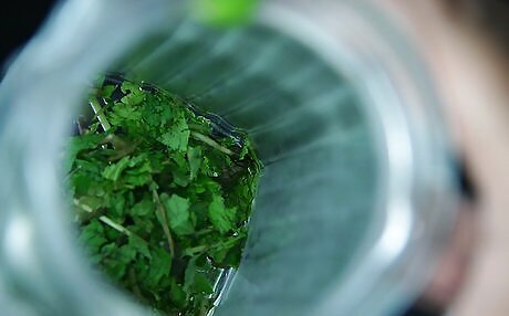 Fill the glass with ice.