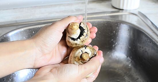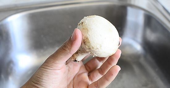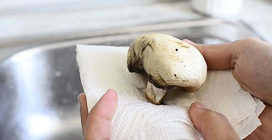 Lightly rinse especially dirty mushrooms at the sink. If the mushrooms seem particularly dirty, you can give them a quick rinse under running water. Make sure that the water is cool, and keep the stream light to avoid oversaturating the mushrooms. Again, be careful not to soak the mushrooms, or they’ll absorb too much water and won’t brown properly when you cook them.
