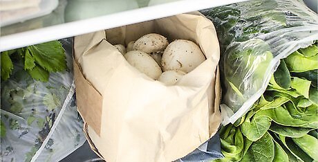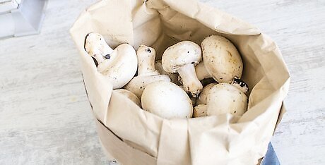 Place unwashed mushrooms in non-plastic packaging for storage. For all mushrooms except morels, you should wait until you’re going to use them to wash them. Leave the mushrooms in their original packaging or transfer them to a paper bag. Avoid plastic bags because they don’t allow the mushrooms to breathe. Morels should be washed before storing. Wrap the cleaned morels in a damp paper towel, and set them in a bowl for storage.