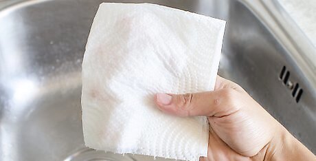 Wet a paper towel or soft mushroom brush for non-morel mushrooms. You don’t want to get most mushrooms too wet when cleaning them, so soaking them is a bad idea. Instead, dampen a paper towel or soft mushroom brush at the sink. Squeeze the paper towel or shake off the brush to remove any excess moisture.
