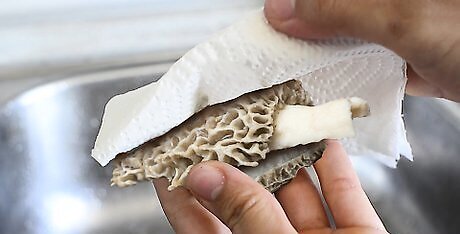 Pat the morels dry. Once the morels are clean, use a clean paper towel to dry them thoroughly. Because they’ve already been cut, you can use them immediately or store them in the fridge.
