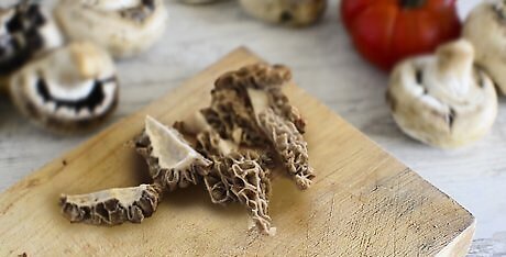 Cut and trim morels. Morels mushrooms need to be cleaned a little differently than other mushrooms. Start by using a sharp knife to cut a thin slice off the bottom of the stems. Next, cut the mushrooms in half from stem to tip if you’d like.