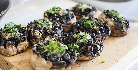 Fill each mushroom with your desired stuffing. When you’ve removed the stems and gills if necessary, the mushrooms are ready for filling. Add a spoonful of your desired stuffing and cook according to your recipe.