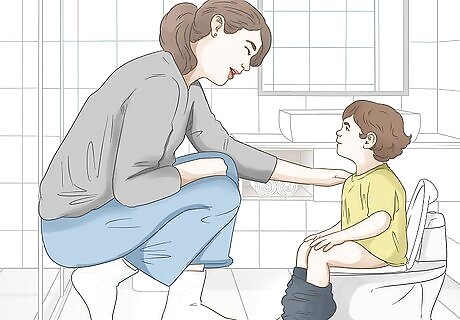 Train your child to use the bathroom before school starts. If your child can follow directions and take their pants on and off on their own, they’re ready for potty training. Explain the importance of hygiene and walk through the steps involved in using the bathroom. Use simple language and practice using the bathroom every 2-3 hours. Consistent practice will get your child ready for bathroom breaks at school, and you’ll help them avoid accidents. Find out whether or not your child's kindergarten classroom has a bathroom in the classroom. If it does not, then make sure that your child has the experience of using an individually-locking toilet stall independently within a public bathroom. If you have a boy, also ensure that he knows how to use a urinal and keeps his pants up when he pees. This is natural and generally more sanitary, convenient, and efficient for boys than peeing in a stall.