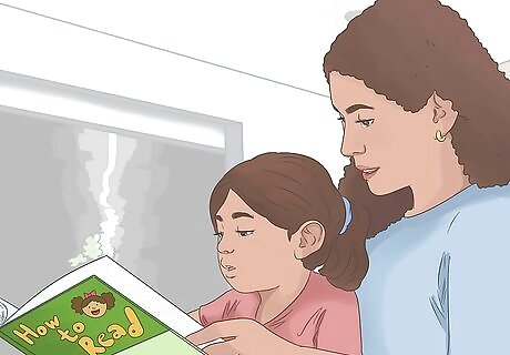 Help your child identify letters and learn the alphabet. Learning to identify letters of the alphabet is essential to developing reading skills early on. Play word games with your child and ask them to recite letters in words that you encounter on cereal boxes, street signs, and posters. The more exposure your child has to the letters in the alphabet, the easier early reading activities will be for them at school. Practice memorizing the alphabet by singing the A-B-C song with your child.