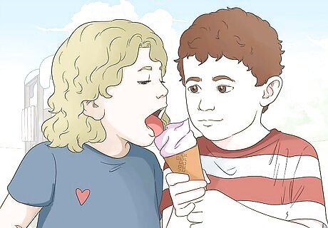 Demonstrate the importance of sharing with others and taking turns. In an environment filled with other children, your child will need to learn how to share and take turns. Ask if you can see a toy they’re playing with, and pretend to borrow it to show the joys of sharing with others. Model nonviolent conflict resolution by staying calm if they throw a tantrum. Praise is a powerful tool when it comes to sharing. Always tell your child how proud you are of them when you see them volunteer to share.