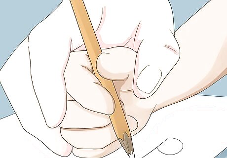 Show your child how to hold a pencil and practice writing their name. Show your child how to rest a pencil between their thumb, index, and middle fingers and hold it at a 45-degree angle. Have them practice writing their name over and over, paying close attention to how they manage a pencil in their hand.Tip: Playing with clay or molding blocks is a good way to strengthen the hand muscles used to write. To encourage holding a pencil correctly give them short pencils and pens. This can help stop them from holding it with their fists. Make writing their name fun! Ask them to sign their name on their art to give them motivation to practice written language. Model using capital letters followed by lowercase letters.