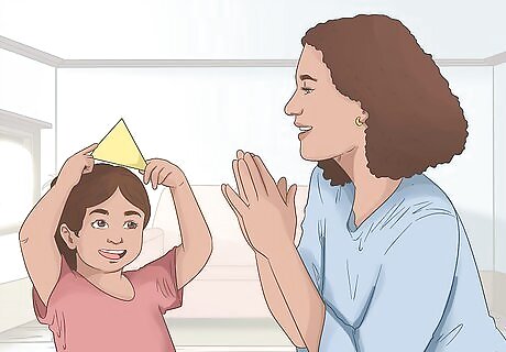 Practice identifying shapes and colors as well as grouping objects together. Identifying and naming common shapes and colors are two foundational skills that your child will need to learn early on. Practice with them by asking them to identify the color and shape in the food they eat, the objects on television shows, and the pictures in books that you read together. Practice sorting objects by common traits like types of food, things you find at the grocery store, or animals that live on a farm. Art can be an excellent tool to teach shapes and colors while grouping objects together. Ask your child to draw or paint blue foods, red animals, and green plants to give them practice.