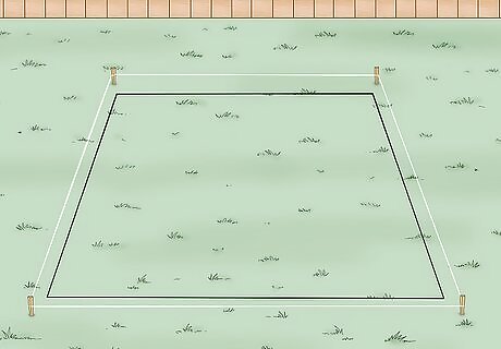Build a hard standing that is slightly larger than your shed. It is important that you construct a hard standing that is slightly larger than your shed’s footprint. Try to make it about three or four inches wider than the shed base along each side. Mark this area out using pegs and string.