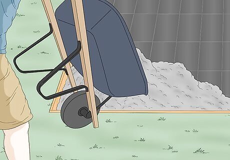 Build an edge all around the footprint. Use timber or steel shuttering to make an edge all around the hole you have dug. The edge should be roughly three inches deep and level with the surface of the ground.