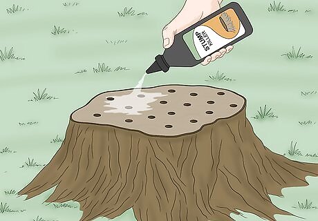 Remove the stump of any trees you cut down. While cutting down trees to allow you to build your shed is a large job, removing the stump is equally as important. If some roots or a part of the stump are left behind, there is a chance that the tree will regrow, which could cause damage to your shed. You can use a stump killer purchased at a garden supply store, or you can spread Epsom salts to kill the roots and plant before digging it out of the ground.