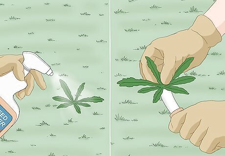 Eliminate any weeds in the area. You may be surprised how strong weeds are; some can punch up through the floor of your shed even if it’s built of concrete. Because of this, it is important to get rid of these weeds before you build your shed. To get rid of weeds, you can: Use chemical weed controllers. Dig the weeds out by hand. Lay down horticultural fabric that will effectively keep weeds from growing by blocking their light source.