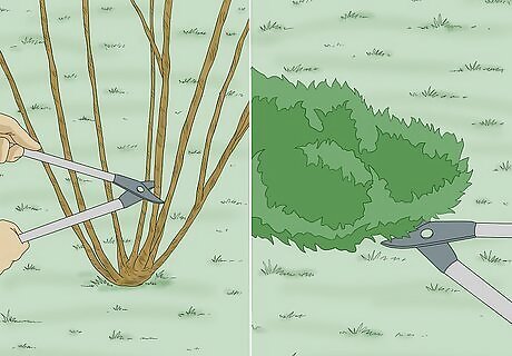 Clear the space where you plan to put your shed. Cut down or cut back any trees or shrubs that may be in the way. Keep in mind that it will be harder to care for and trim any shrubs or branches in the back or on the sides of your shed. If you plan to keep some trees or shrubs in these areas, consider keeping a path clear that runs all the way around your shed.