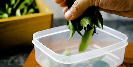 Seal the leaves in an airtight container. Use a plastic container with a lid or a sealed plastic bag. Choose a container that is big enough not to squish any of your leaves. They can be sitting on top of each other if need be.