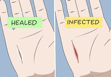 Notice if your cut has any increased swelling or pain. While it’s normal to experience some swelling and slight pain, those feelings should go away as the cut heals. If you see that the skin around your cut feels more tender or has swollen even more, then you may need to see your primary care provider to check for an infection.