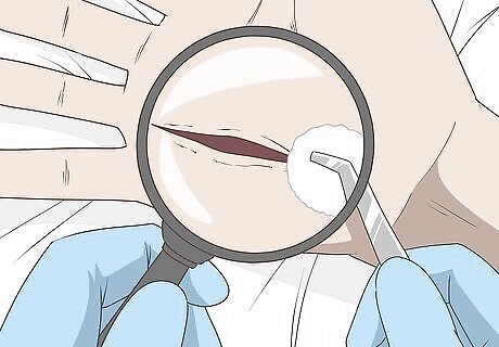 Examine any drainage coming from the cut. If you notice green or yellowish pus draining from the cut, it's likely to be infected. White or cloudy fluid draining from the cut could also be a sign of infection. Avoid squeezing or pressing on the cut to try to release the pus. Draining the pus from the cut won't clear any infection and might make it worse.
