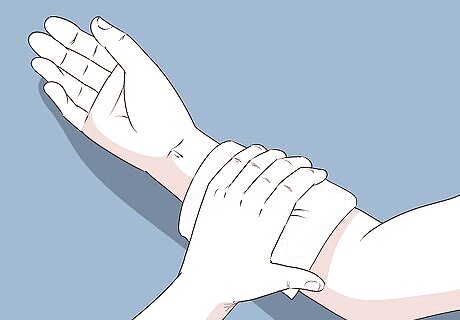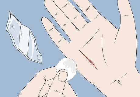 Pat the cut dry. Use a clean piece of gauze, paper towel, or lint-free cloth to dry the cut and the skin around it. If you use a washcloth or facial tissue, fibers could get into the cut, which could ultimately lead to infection. Don't blow on the cut or the surrounding skin to dry it. Bacteria in your breath could cause an infection to develop.