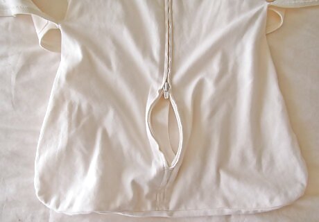Make modifications to the zippers. Find and use an invisible zipper, if possible. Some superstores (such as Walmart, Kmart, Costco, and several online merchants) sell what are called "Invisible zippers." What fun the child will have if they can't see the zipper easily but see their undergarments or skin instead! Use zippers that have locking features installed in them. Locked zippers will only allow the caretaker or parent to zipper the zipper back up, but not back down. At online merchants such as Ebay and Etsy, they tend to be associated with autistic people, but can be a godsend to parents. Purchase a sleeper with a zipper in the back. Many online retailers sell sleepers with zippers in the back for this exact reason. It keeps the zipper out of sight and out of mind to the child, making it more difficult for them to unzip if they are determined to wriggle out. If your child still wears diapers (or similar disposable garments), putting their closing method in the back may make the diaper change take longer. On top of unzipping the sleeper, you will then have to turn the child over to tackle the diaper-change. Potty-trained children must never be forced to not be able to unzip their sleeper's zipper. Causing this may make them have an "accident" which could have been avoided with your help. If the child just started potty-training, you may make the child feel unstable and unable to learn potty-training with one on and may want the child to be in diapers for longer. Also avoid doing so, if your child is presently nighttime toilet-training or is a current bedwetter - at any age. Zipper relocation must be a "method of last resort." The child must have a comfortable and peaceful sleep.