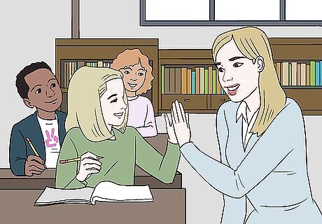 Create relationships with your students so they feel supported. You’re likely already trying to build relationships with your students so you can give them the support they need. If you’re not already, start greeting them at the door every day so they feel seen and heard. Get to know your students, and check up on them so they see that you care. Invite your students to come to you anytime if they need help with anything, including bullying. Having positive relationships with your students can help them create better relationships with each other. Additionally, it helps all of your students feel loved and included in the classroom. This may help prevent students from acting out through bullying, and it also increases the likelihood that your students will feel comfortable talking to you if bullying does occur.
