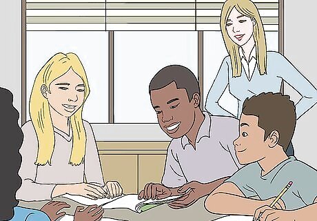 Have students work together so they get to know each other. Your students are less likely to bully each other if they’re on friendly terms. Incorporate group activities on a weekly basis to help them make connections with each other. While they’re working together, monitor their interactions so you can step in if necessary. Redirect students if you hear negative comments coming from a group member. If you notice some groups aren’t interacting as much, ask them questions to get a conversation started.