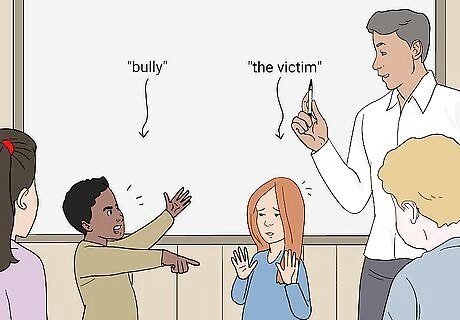 Do roleplaying activities to help kids learn how to respond to bullying. Students may feel really shocked when they’re the target of or witness to bullying, and they may have trouble figuring out what to say. Roleplaying allows kids and teens to practice speaking up and helps them get ideas from each other about what to say. Write a few short bullying scenes, then get students to act them out. Ask the class to brainstorm ways to respond to the bullying as both victim and witness. At first, lead a discussion about how students might respond. Later, have students play a bystander and let them practice intervening. Make sure the students take turns playing the “bully” and “the victim.”