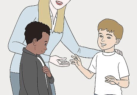 Help students who have trouble fitting in make friends. It’s totally normal for some kids to struggle with making friends. Unfortunately, these kids are often at a greater risk of experiencing bullying. Match them with students you think they’ll get along with to help them make a friend. You could try assigning them to be classroom partners, putting them in a group together, or asking the other student to talk to them. In elementary school, you might partner the students together. If the students are teens or preteens, ask a trustworthy, kind student to take the friendless student under their wing. If the student doesn’t want to make friends, arrange activities for them so they don’t have to eat lunch or play alone. You might ask them to help you with a fun task during recess or could help them engage in a hobby, like art or playing on the computer, during lunch.