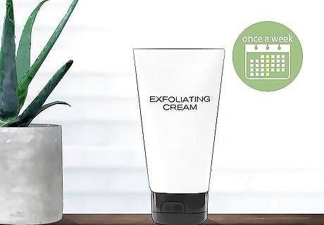 Avoid over-exfoliating your skin. Exfoliating removes oil and dead cells from the surface of the skin. If your skin is dry, you can still exfoliate (a maximum of once per week), just use a very light pressure and rub in a circular motion for about 30 seconds. Never exfoliate if you have open cuts, wounds, or burns. Make a gentle exfoliant at home using common ingredients like baking soda and milk or white granulated sugar and oil.