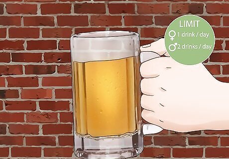 Limit your alcohol intake. Not only will alcoholic beverages dehydrate your insides, they’ll affect the appearance of your skin. Excessive alcohol can cause nutritional deficiencies over time, depleting your body of Vitamin A, which will result in dry skin. Stick to a maximum of one drink per day for women and two drinks for men and be sure to hydrate before, during, and after consumption. See your doctor about testing for nutritional deficiencies. If you suspect you might be low in Vitamin A, replenish your stores of vitamin A with foods like sweet potatoes, spinach, carrots, and cantaloupe.
