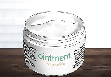 Use fragrance-free creams and ointments instead of water-based lotions. The more oily the product, the more moisture it will provide to your skin. Avoid lotions that come in pump-bottles as they contain the least amount of oil and are often diluted with water to make a thinner product to fit the packaging. Ointments contain the most oils but if you don’t want that greasy feeling, use an emollient cream or body butter instead. Adding natural fragrances (like lavender or gardenia essential oils) can still give off a nice scent without the risk of irritation. But avoid adding your own oils if you have super-sensitive skin or are allergic to certain plants and herbs (like lavender or chamomile). Tip: Thicker ointments (like Vaseline) are best suited for the skin on your body. For your face, only use creams that say “noncomedogenic” so they won’t cause you to break out.