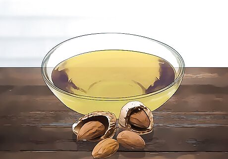 Look for creams that contain hyaluronic acid, glycerin, and dimethicone. These three ingredients help the outer layer of skin retain moisture. Look for these on labels along with niacinamide, lanolin, mineral oil, and petrolatum. If you don’t want the heavy feeling of petrolatum jelly or the oily residue from mineral oil or petrolatum, only use products with these ingredients right before bed. Products containing niacinamide are especially helpful to treat dry skin as well as aging, rosacea, and acne. Coat your skin in olive oil or coconut oil before going to bed for a quick and easy overnight moisturizing treatment. This is especially helpful for dry skin on the feet (just remember to wear socks so you don’t slip getting in and out of bed).