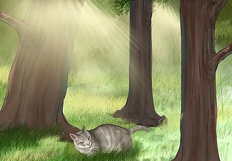 Provide shaded areas outside. If your cat spends time outside, make sure there is a place for your cat to get out of the sun or heat. This can include trees that provide shade, a porch, under a building or carport, or an area you build specifically for your cat. During the hottest months and the heat of the day, consider limiting the amount of time that you allow your cat outside. Even in the shade, your cat may get too hot and be unable to cool down.