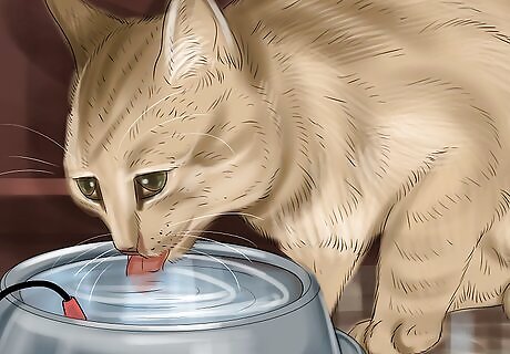Provide water for your cat. Another way to help prevent heatstroke in your cat is to make sure they have plenty of water. Make sure the water is fresh and cool. This is important if your cat is inside or outside. Proper hydration can help your cat stay cool and help prevent heatstroke. Keep the water bowl out of the direct sunlight so it doesn’t get hot. Consider keeping the water in a cool, shaded place. On very hot days, place ice cubes in the water to help cool it down.