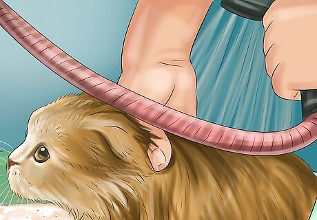 Try to lower the cat’s temperature. After your have removed your cat to a cooler area, you should try to lower the cat’s temperature. You can soak your cat with lukewarm or cool water. You can put them in a tub, sink, or pool full of water. You may also pour water over your cat’s body. Another measure you can try is to place cool towels on your cat’s stomach, head, and feet. Give your cat cold water to drink. If the cat won’t drink it, use a syringe to gently place water into the cat’s mouth. Make sure to only put a little water in the cat's mouth at a time. Angle the syringe to the side of the mouth instead of directly into the back of the mouth. If you squirt the water into the back of the mouth, the cat may choke. Place a bag of ice around the cat’s head and anus. Make sure not to use cold water on your cat’s body because it could cool their body too fast and lead to additional problems. If your cat’s temperature gets below 103 degrees Fahrenheit, they may be too cold. Watch the cat to make sure they don’t start showing symptoms of being too cold, like shivering.