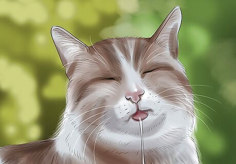 Look for cooling behavior. Your cat may exhibit behaviors that show they are trying to cool themselves. You cat may be panting or drooling. The cat may also have sweaty feet. The cat may excessively groom themselves to try to cool off. Cats only pet or sweat through their feet if they are trying to get rid of excess body heat.