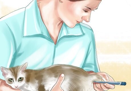Take your cat to the vet. If your cat has suffered heatstroke, you should take them to the vet. The vet can take the cat’s temperature to get an accurate reading, and then they will help cool the cat down if they are not cool enough. The cat may also be given an IV of fluids. Even if you have lowered your cat’s temperature, it’s a good idea to take your cat to the vet to make sure they are fine and not in danger.